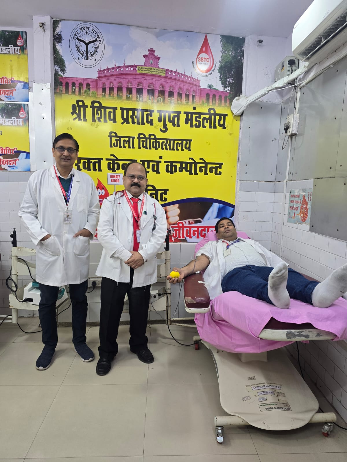 वाराणसी। श्री शिव प्रसाद गुप्त मण्डलीय जिला चिकित्सालय, वाराणसी में स्थित ब्लड बैंक द्वारा शुक्रवार को चिकित्सालय में ही कार्यरत चिकित्सकों एवं चिकित्साकर्मियों के सहयोग से जनकल्याण हेतु निराश्रित मरीजों, थैलेसिमिया व कैंसर के मरीजों व जननी सुरक्षा योजना से आच्छादित प्रसूति महिलाओं के रक्त पूर्ति हेतु एक वृहद स्वैच्छिक रक्तदान शिविर का आयोजन किया गया।