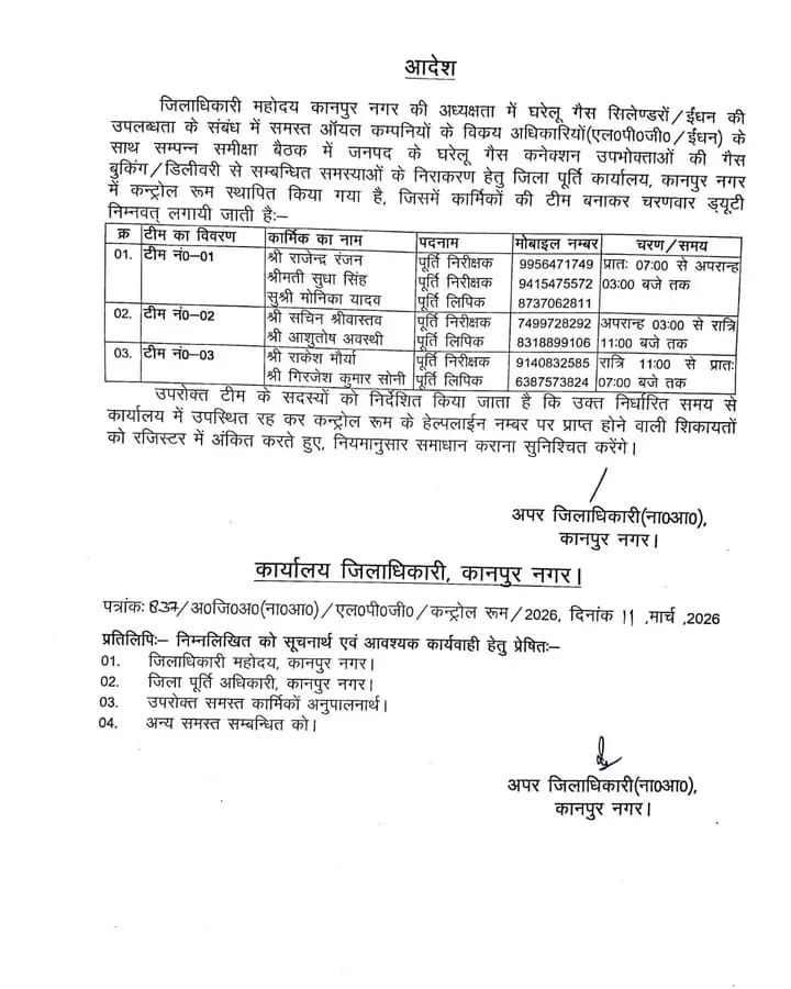 ✍️अपर जिलाधिकारी (सिविल सप्लाई) राजेश कुमार ने बताया कि एलपीजी गैस आपूर्ति संबंधी शिकायतों के निस्तारण के लिए एक कॉल सेंटर स्थापित किया गया है। इसके लिए 0512-2988763 दूरभाष नंबर निर्धारित किया गया है।